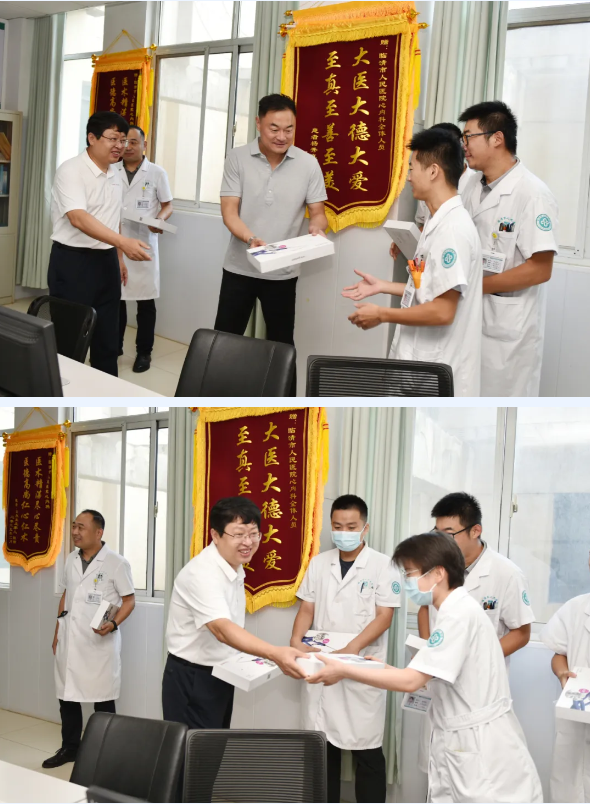 党委书记谷雨,党委副书记、院长李树勇到各临床科室,向医师们致以诚挚的慰问和节日的祝福,并送上鲜花和纪念礼品,对大家长期以来坚守岗位、救死扶伤的精神予以肯定,鼓励大家继续发扬“团结、拼搏、卓越、创新”的临医精神,以更加饱满的工作热情和严谨的工作态度,为推动医院高质量发展和增进人民群众健康福祉再创新功。