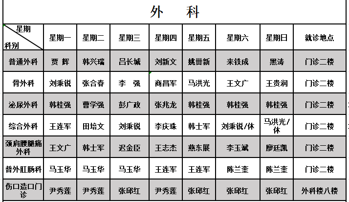 总院区门诊排班