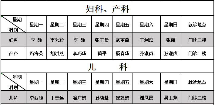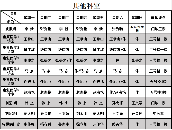 东院区门诊排班