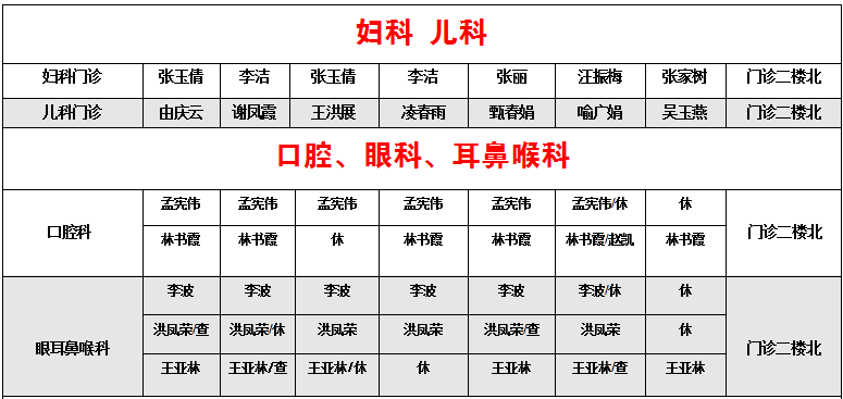 东院区门诊排班