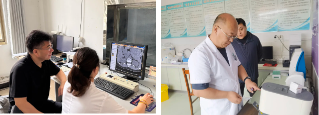 随后,我院医学影像科专家与检验专家对唐园中心卫生院进行业务指导。医学影像科专家到CT室,通过现场查看病例、指导操作流程、解读影像报告等方式,帮助基层医务人员提升影像诊断水平;检验专家则走进检验科,围绕检验项目操作规范、质量控制标准、仪器设备维护等内容,分享前沿的检验技术和管理经验,助力卫生院检验科进一步规范工作流程,提高检验结果的准确性和可靠性。