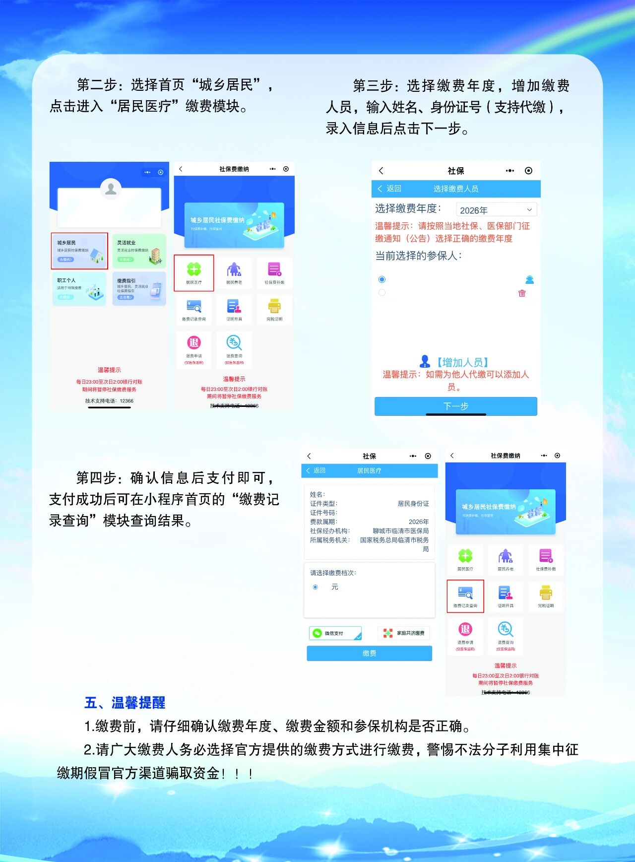 个人缴费不上涨!2026年度临清市居民医保集中缴费开始啦!