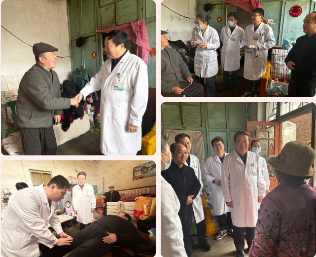 随后,我院医护团队还为行动不便的老人开展了入户检查。年过七旬的李大婶一年前在我院做过膝关节置换,一直没再复查,骨病科赵勇主任专门赶来为其进行全面的身体检查,并根据目前恢复情况,告知其后续的治疗措施。张大爷是多年的脑梗患者,医护人员现场为其测量血压、血糖,神经内科、内分泌科、眼科的专家综合评估检查情况并给出诊断意见,“家里也没孩子,去城里看一次病很不方便,你们来得太及时了,真是解决了我们的看病难题,真心谢谢市医院的专家们!”家属紧紧握着医务人员的手,激动地说道。
